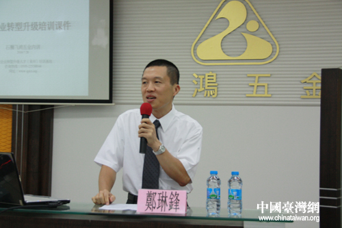 來自臺(tái)灣的知名講師鄭琳鋒對(duì)飛鴻五金飾品有限公司中層管理干部進(jìn)行培訓(xùn)。(中國臺(tái)灣網(wǎng) 胡珊珊 攝)