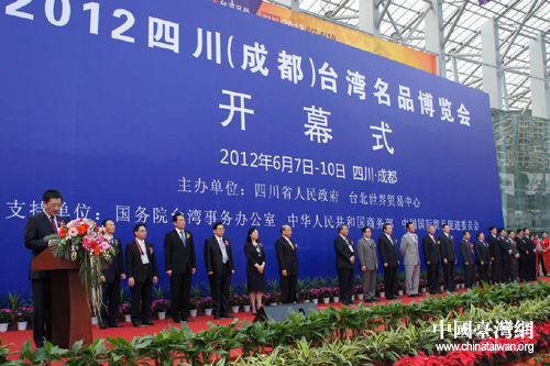 四川省長(zhǎng)蔣巨峰宣布2012四川(成都)臺(tái)灣名品博覽會(huì)開(kāi)幕。(圖片來(lái)源:四川省臺(tái)辦)