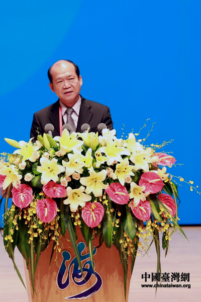 臺灣農(nóng)田水利聯(lián)合會會長楊明風(fēng)在第四屆海峽論壇大會上致辭。(中國臺灣網(wǎng) 王偉 攝)
