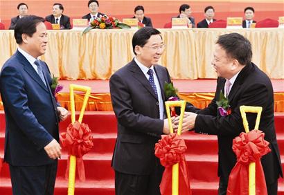 昨天的擴建項目動工典禮上,省委常委、廈門市委書記于偉國,市委副書記、市長劉賜貴等領(lǐng)導(dǎo),都出現(xiàn)在現(xiàn)場,為擴建項目動工培土。在動工儀式之前,于偉國、劉賜貴一行,還詳細聽取了宸鴻科技近年來的發(fā)展情況介紹以及未來規(guī)劃等。