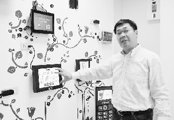 臺(tái)灣新大陸資訊科技公司總經(jīng)理閻蔚中介紹新產(chǎn)品。