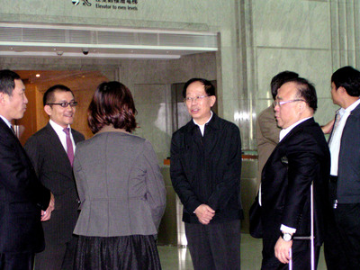 據臺灣媒體報道,農業(yè)部副部長危朝安昨天傍晚在大成集團董事長韓家宇、總裁兼營運長韓家寰陪同下,登上臺北101觀景臺參觀。危朝安對大樓設計頗感興趣,并拍了紀念照。