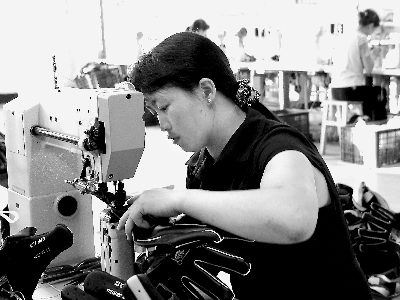 宏國(guó)(龍巖)運(yùn)動(dòng)用品有限公司員工正在趕制出口歐美的棒球手套。