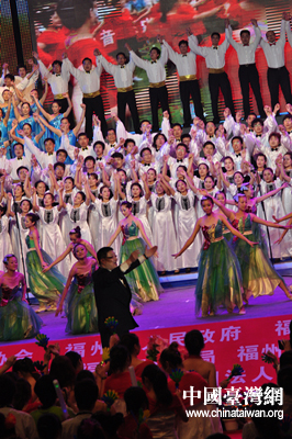 中國(guó)臺(tái)灣網(wǎng)6月22日福州消息 21日晚,由中國(guó)音樂家協(xié)會(huì)、福州市政府和福建省對(duì)外文化交流協(xié)會(huì)聯(lián)合主辦的“海峽論壇·第三屆海峽兩岸合唱節(jié)”在福州市體育館舉辦了閉幕式暨頒獎(jiǎng)音樂會(huì)。中共中央臺(tái)辦、國(guó)務(wù)院臺(tái)辦副主任葉克冬,中國(guó)音協(xié)分黨組書記、常務(wù)副主席徐沛東,福建省有關(guān)領(lǐng)導(dǎo)袁榮祥、唐國(guó)忠、蘇增添、李祖可等嘉賓,在閉幕式上向來自海峽兩岸參加本屆合唱節(jié)的獲獎(jiǎng)單位頒發(fā)了獎(jiǎng)杯和證書。
