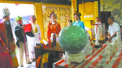 每逢農(nóng)歷五月十六日窯坊公誕辰之日,瓷都人都要在祖龍宮舉行盛大奉祀活動。 參與者并非善男信女,而是些陶瓷業(yè)者;供品也不是豬、羊之類的美味佳肴,而是陶瓷廠新開發(fā)的產(chǎn)品,或是陶瓷藝人新創(chuàng)作并獲獎的藝術品。一則紀念林炳為光大瓷業(yè)所作的巨大貢獻,二則祈愿自己在來年的陶瓷生產(chǎn)制作中能夠順利如意。這種不落俗套的奉祀方式顯得相當獨特。