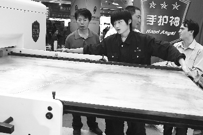 本報(bào)在海峽印刷展上,一位銷售代表在演示印刷機(jī)器。
