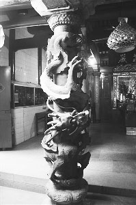 祥芝慈濟(jì)宮位于石獅祥芝鎮(zhèn),宮內(nèi)一對清朝咸豐六年(1856年)的石雕龍柱是由硬度高、顆粒小的輝綠巖精雕細(xì)刻而成。石雕龍柱高2.05米,直徑0.9米,龍口張度19.5厘米,石柱上雙龍盤繞,龍口含珠,雙眼突出,威猛而不失大氣;上雕八仙,栩栩如生,令人贊嘆工匠的鬼斧神工。其中一根石柱上面落款“清咸豐丙辰年冬”,另一根刻著“本里蔡保勝號敬奉”字樣,正是這兩句落款揭開了這對龍柱的身世之謎。