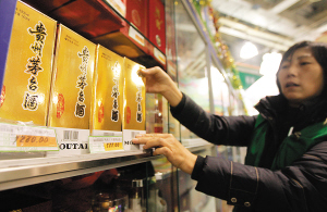 受53度飛天茅臺(tái)領(lǐng)漲影響,其他低度茅臺(tái)系列白酒的價(jià)格也開始上漲。在人人樂超市,38度飛天價(jià)格為650元,而調(diào)價(jià)前僅為498元,漲幅達(dá)到30%。在大潤發(fā)超市,38度、43度五星飛天茅臺(tái)的售價(jià)分別為549元、629元。而且,超市工作人員還表示:“由于飛天茅臺(tái)系列白酒價(jià)格漲得比較厲害,現(xiàn)在每天限購兩瓶!