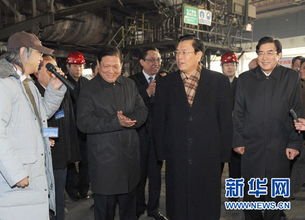 1月13日,中共中央政治局委員、國(guó)務(wù)院副總理張德江出席首鋼北京石景山鋼鐵主流程停產(chǎn)儀式并發(fā)表講話(huà)。這是張德江出席停產(chǎn)儀式后參觀已經(jīng)停產(chǎn)的三高爐。新華社記者馬占成 攝