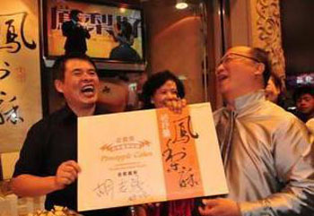 胡志強說,她的太太邵曉鈴就讀大甲鎮(zhèn)東陽小學(xué),所以他也是大甲的女婿,今年裕珍馨參加2010菠蘿好酥獲獎后,他也因而認(rèn)識了裕珍馨老板陳裕賢,知道他很用心制作,制作過程也很衛(wèi)生,所以主動要求為裕珍馨的產(chǎn)品代言,希望把好產(chǎn)品推銷給全世界的消費者。