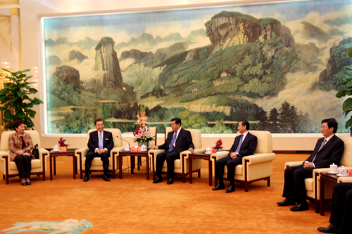 7日下午,中共中央政治局常委、全國政協(xié)主席賈慶林在人民大會堂福建廳會見來京參加第十四屆京臺科技論壇的臺灣工商界代表。(中國臺灣網(wǎng) 陳佳慧 攝)