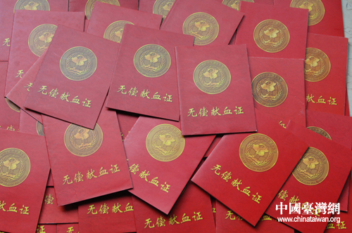 記錄著陳澤人獻(xiàn)血記錄的無償獻(xiàn)血證(中國臺灣網(wǎng)通訊員 葛鳳章 攝)