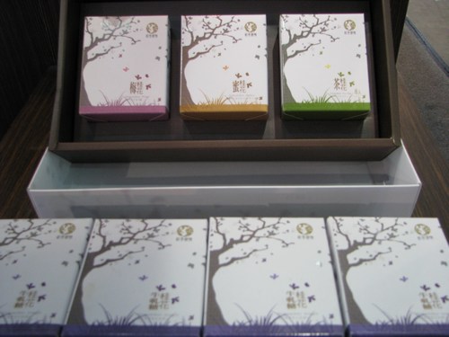桂花小鋪種植了三千坪的桂花樹,也源自于此,桂花系列產品因此而研發(fā)產生。桂花產品制作過程繁復,桂花就像是粒粒的黃金,需要慢慢的挑選才能制作出好的桂花系列產品,目前已經研發(fā)出桂花蜜、桂花牛軋?zhí)、桂花茶、桂花梅醋、桂花蜜醋及桂花梅。也是法國餐廳PASADENA的御用商品,具有質量保證。