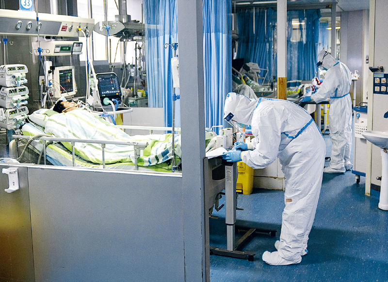 在抗擊新冠肺炎疫情的戰(zhàn)役中,廣大醫(yī)務(wù)人員義無(wú)反顧、逆行出征,白衣執(zhí)甲、不負(fù)重托,詮釋了醫(yī)者仁心和大愛(ài)無(wú)疆。圖為2020年1月24日,在武漢大學(xué)中南醫(yī)院重癥隔離病房,醫(yī)務(wù)人員為病人治療。 新華社記者 熊琦/攝