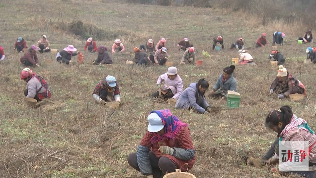 產(chǎn)業(yè)化的發(fā)展路子不僅讓城鎮(zhèn)居民就近就業(yè),也讓地處山區(qū)的村民們在世代勞作的土地里成了工人,企業(yè)加工的半夏就來自這片基地。溫度接近零度的烏蒙山區(qū),本該是農(nóng)閑時節(jié),但在赫章縣鐵匠苗族鄉(xiāng)的中藥材種植基地里卻有著少見的繁忙景象,70多位工人正拿著釘耙提著桶采收半夏。