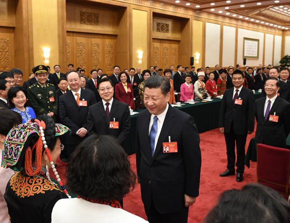 3月8日,中共中央總書(shū)記、國(guó)家主席、中央軍委主席習(xí)近平參加十二屆全國(guó)人大五次會(huì)議四川代表團(tuán)的審議。新華社記者 李學(xué)仁攝