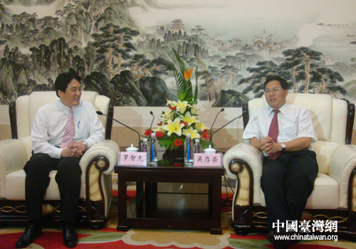 安徽省委常委、合肥市委書記吳存榮(右)會見了統(tǒng)一企業(yè)(中國)投資有限公司副董事長羅智先(左)一行。(圖片來源:合肥市臺辦)