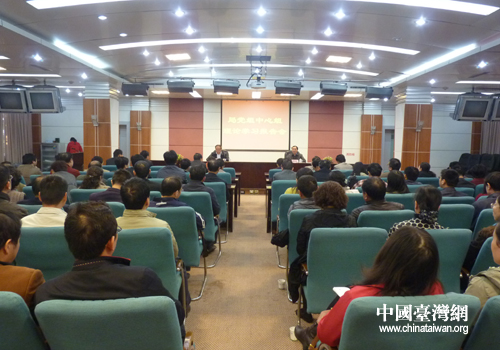 中國臺灣網(wǎng)11月7日合肥消息 11月5日下午,省臺辦主任朱德祥應邀赴省廣電局,給局黨組中心組理論學習成員作“臺海形勢報告”。省委宣傳部副部長、省廣電局黨組書記、局長車敦安主持報告會,局黨組成員、局機關全體人員、局屬各單位領導班子成員,省廣院處以上干部及副高以上人員,其他單位副高以上人員及科級干部,近100人聆聽了報告。