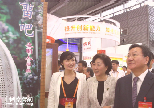 商務(wù)部副部長(zhǎng)姜增偉(右)、安徽省副省長(zhǎng)花建慧(中)參觀畱吧。(圖片來(lái)源:安徽省臺(tái)聯(lián))