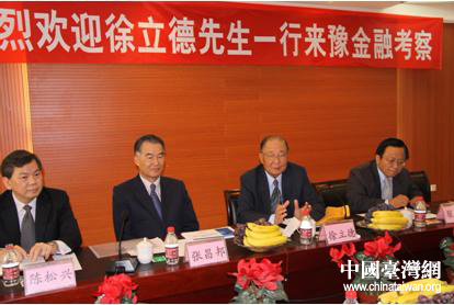 徐立德說,我們兩岸同祖、同文,兩岸一家親。臺灣金融業(yè)經(jīng)過多年的發(fā)展,積累了許多好的經(jīng)驗,通過與河南金融同行的交流,相互之間可以借鑒。河南省處于中部省份發(fā)展前位,區(qū)位優(yōu)勢明顯,河南人口眾多,市場廣闊,與河南金融業(yè)合作的前景很好。臺灣金融業(yè)需要到大陸來發(fā)展,向城市銀行發(fā)展,河南是臺灣金融業(yè)發(fā)展的最佳地。希望通過與河南金融界人士的交流,開啟臺豫兩地金融業(yè)合作之門。