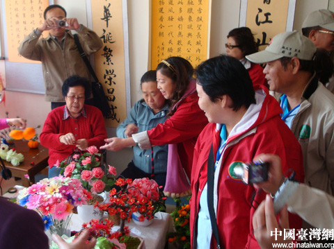 中國(guó)臺(tái)灣網(wǎng)10月20日青島消息 “我會(huì)把美麗的青島展現(xiàn)給每一位居民!弊蛉眨19日)上午,臺(tái)北市松山區(qū)的26位“里長(zhǎng)”來(lái)到青島市南區(qū)湛山社區(qū)考察交流。70歲的美仁里里長(zhǎng)劉張春美說(shuō),看過(guò)青島等地的居委會(huì)后,她學(xué)到很多新東西,也有了不少新點(diǎn)子,還要將湛山社區(qū)居民的絹花手藝帶回去。
