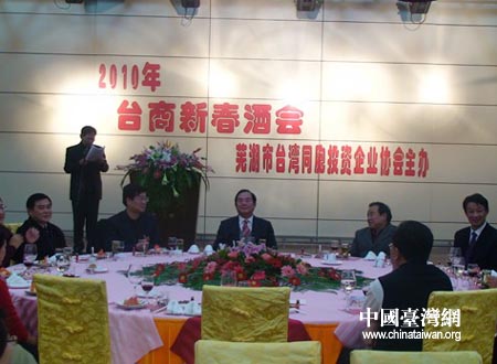 蕪湖市2010年臺商新春酒會現(xiàn)場。圖片來源:蕪湖市臺辦