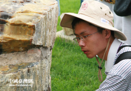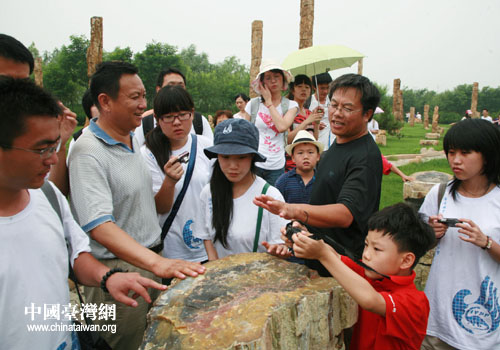 “海峽兩岸大學(xué)生古生物夏令營(yíng)”的營(yíng)員在觀看化石(圖片來(lái)源:遼寧省朝陽(yáng)市臺(tái)辦)