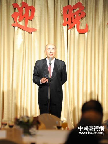中國國民黨榮譽主席吳伯雄在臺北圓山大飯店會見并宴請中共湖南省委副書記梅克保一行。圖為吳伯雄致辭。(湖南省臺辦 李蘭 攝)