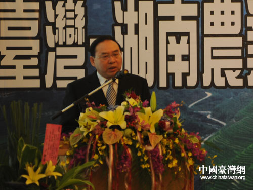 中國(guó)臺(tái)灣網(wǎng)8月6日臺(tái)南消息 8月6日上午,臺(tái)灣-湖南農(nóng)業(yè)合作論壇暨農(nóng)產(chǎn)品采購(gòu)信息發(fā)布會(huì),在美麗的臺(tái)南走馬瀨農(nóng)場(chǎng)舉行。中共湖南省委副書記梅克保、湖南省人大常委會(huì)副主任劉蓮玉、湖南省人民政府省長(zhǎng)助理袁建堯和臺(tái)灣親民黨主席宋楚瑜、親民黨副主席張昭雄、海峽兩岸農(nóng)業(yè)協(xié)會(huì)理事長(zhǎng)、農(nóng)業(yè)信用保證基金董事長(zhǎng)蔡勝佳、世界蔬菜研究中心理事長(zhǎng)孫明賢、振綱投顧公司董事長(zhǎng)范振宗等湘臺(tái)兩地嘉賓共約200余人出席論壇。