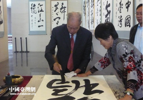 陳老是9月19日應(yīng)邀來朝陽的,先在北票市舉辦書畫展,隨后在朝陽市舉辦迎國慶書法展。此次書法展由朝陽市委宣傳部、市文化廣電新聞出版局主辦,共展出陳大絡(luò)的作品72幅。這些作品多為陳老精品力作,其中多幅作品是專門為朝陽而創(chuàng)作。如“鳳鳴朝陽”、“龍鳥騰飛”等作品,雄渾大氣,字里行間飽含著陳大絡(luò)對中國傳統(tǒng)文化的摯愛以及對祖國的美好祝福。(中國臺灣網(wǎng)朝陽市臺辦通訊員 王大春 李冰)