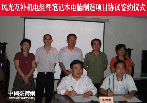 中國(guó)臺(tái)灣網(wǎng)10月25日池州消息 日前,浙江省湖州市臺(tái)灣同胞投資企業(yè)協(xié)會(huì)常務(wù)副會(huì)長(zhǎng)賴玉敏一行至安徽省池州市經(jīng)濟(jì)開(kāi)發(fā)區(qū)考察,雙方達(dá)成并簽訂了總投資3000萬(wàn)美元的“風(fēng)光互補(bǔ)機(jī)電組、筆記本電腦制造”項(xiàng)目協(xié)議。