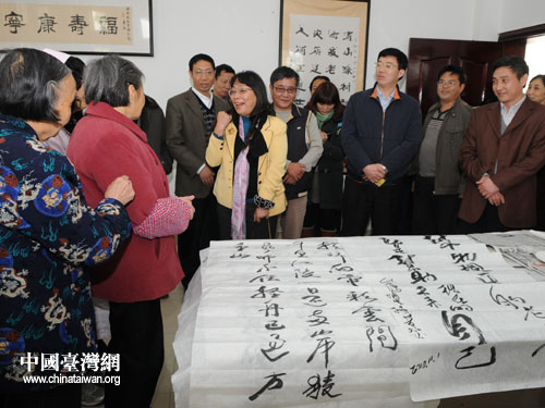 陳芳姿夫婦在綿陽(yáng)市安縣社會(huì)福利中心看望慰問(wèn)老人,并為共同做好老年人服務(wù)事業(yè)加油鼓勁。(四川省臺(tái)辦)