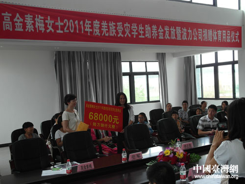 中國(guó)臺(tái)灣網(wǎng)6月22日綿陽(yáng)消息 6月21日,臺(tái)灣知名人士、臺(tái)灣少數(shù)民族民意代表高金素梅一行赴四川綿陽(yáng)開展參訪交流活動(dòng),并為其助養(yǎng)的20名北川羌族貧困學(xué)生發(fā)放2011年度助學(xué)金。