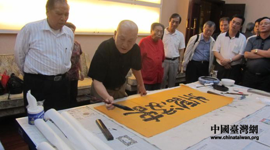 2日晚,韶關(guān)市委書(shū)記鄭振濤在韶州賓館宴請(qǐng)了臺(tái)灣畫(huà)院代表團(tuán)一行,向客人介紹了韶關(guān)豐富的人文歷史和優(yōu)美的自然風(fēng)光,希望以臺(tái)灣藝術(shù)家的丹青墨寶,讓?shí)u內(nèi)更多的同胞了解韶關(guān),帶動(dòng)更多臺(tái)灣文化藝術(shù)界人士來(lái)韶參觀交流,增進(jìn)兩地文化藝術(shù)的相互了解,促進(jìn)韶臺(tái)文化藝術(shù)交流不斷深化,同時(shí)預(yù)祝代表團(tuán)此次采風(fēng)創(chuàng)作活動(dòng)取得圓滿(mǎn)成功。晚宴后,兩地書(shū)法藝術(shù)家揮毫落墨,進(jìn)行了書(shū)法藝術(shù)交流。