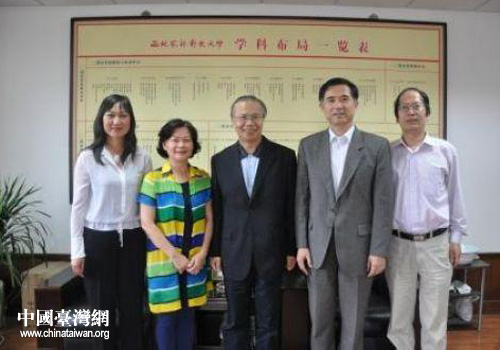 西北農(nóng)林科大副校長(zhǎng)侯曦與臺(tái)灣中國(guó)醫(yī)藥大學(xué)副校長(zhǎng)吳永昌及其夫人一行合影留念(圖片來源:陜西省臺(tái)辦)