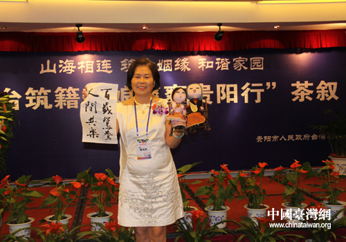 “在臺(tái)筑籍新娘爽爽貴陽(yáng)行”活動(dòng)在筑啟動(dòng),臺(tái)灣高雄貴州同鄉(xiāng)會(huì)理事長(zhǎng)陳光鳳致辭,并向活動(dòng)主辦方贈(zèng)送禮物,寓言兩岸婚姻和諧美滿(貴陽(yáng)市臺(tái)辦 李慶斌 攝)