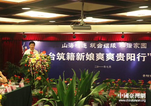 中國(guó)臺(tái)灣網(wǎng)7月7日貴陽(yáng)消息 7月5日下午,“在臺(tái)筑籍新娘爽爽貴陽(yáng)行”活動(dòng)在筑啟動(dòng)。貴州省臺(tái)辦副主任韓支前、市人大副主任丁海、市政協(xié)副主席黃乃鑄等領(lǐng)導(dǎo)出席會(huì)議。臺(tái)灣高雄貴州同鄉(xiāng)會(huì)理事長(zhǎng)陳光鳳、花蓮貴州同鄉(xiāng)會(huì)理事長(zhǎng)王貴娥等在臺(tái)筑籍新娘及親屬應(yīng)邀參會(huì)。中國(guó)知名作家李寬定先生、貴州大學(xué)教授許鹿女士等婚姻問(wèn)題專家,市直有關(guān)部門負(fù)責(zé)人等近80人參加啟動(dòng)儀式。市委統(tǒng)戰(zhàn)部副部長(zhǎng)、市臺(tái)辦主任李靜主持啟動(dòng)儀式。