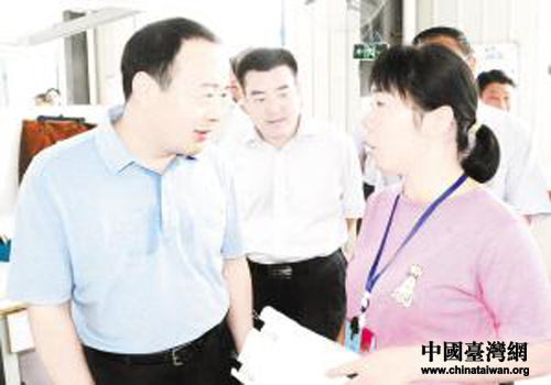 中國(guó)臺(tái)灣網(wǎng)7月27日周口消息 7月25日,河南周口市委書(shū)記毛超峰來(lái)到年產(chǎn)160萬(wàn)件服裝的周口市臺(tái)南制衣有限公司生產(chǎn)車(chē)間,察看項(xiàng)目進(jìn)度,與企業(yè)負(fù)責(zé)人一起研討解決生產(chǎn)建設(shè)中遇到的難題。周口市委常委、市委秘書(shū)長(zhǎng)李明方,副市長(zhǎng)劉國(guó)連、陳志偉陪同考察。
