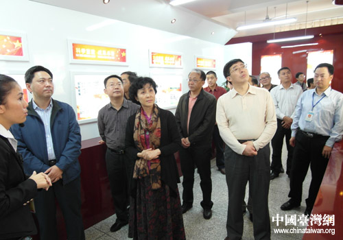 張錦明察看游仙區(qū)教育系統(tǒng)抗震救災(zāi)及災(zāi)后重建陳列館(圖片來源:綿陽市臺辦)