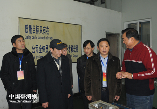中國臺(tái)灣網(wǎng)12月22日宿遷消息 12月21日下午,為廣泛聽取政協(xié)委員對(duì)宿遷市對(duì)臺(tái)工作的意見和建議,推進(jìn)《臺(tái)灣同胞投資保護(hù)法》及其《實(shí)施細(xì)則》的有效落實(shí),江蘇宿遷市政協(xié)副主席孫其松率部分政協(xié)委員在市臺(tái)辦領(lǐng)導(dǎo)的陪同下,實(shí)地考察了江蘇鼎峰重鋼工程有限公司、可成科技(宿遷)有限公司、江蘇鋁技精密機(jī)械有限公司等臺(tái)資企業(yè),并與部分臺(tái)資企業(yè)代表進(jìn)行了座談。
