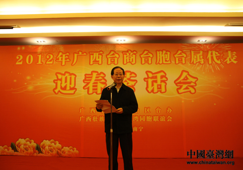 中國臺灣網(wǎng)1月6日南寧消息 1月5日,2012年廣西臺商臺胞臺屬代表迎春茶話會在南寧舉行。自治區(qū)領(lǐng)導(dǎo)和有關(guān)部門負責(zé)人與全區(qū)100多位臺商臺胞臺屬臺生代表歡聚一堂,共敘親情友情,喜迎新春。