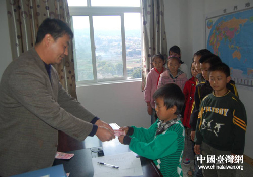 攀枝花市大龍?zhí)吨行男O蚴苤鷮W(xué)生發(fā)放2011年秋季學(xué)期彭陰剛先生捐助款。(圖片來(lái)源:攀枝花臺(tái)辦)