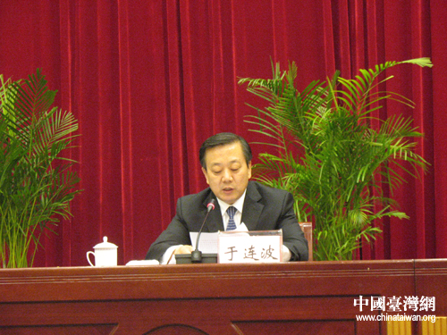 威海市臺辦主任于連波做工作報告(圖片來源:威海臺辦)
