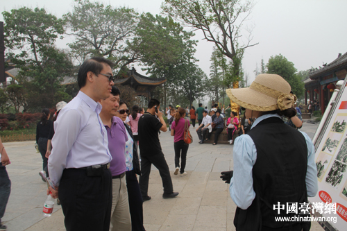 臺灣勤益科技大學(xué)綠色生活科技整合研究中心主任宋文沛教授參觀臺兒莊古城。(圖片來源:棗莊臺辦)