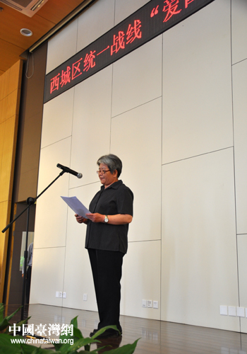 臺(tái)屬張欲學(xué)作了題為《血濃于水——喜迎十八大與祖國統(tǒng)一有感》的演講。(圖片來源:北京西城區(qū)臺(tái)辦)