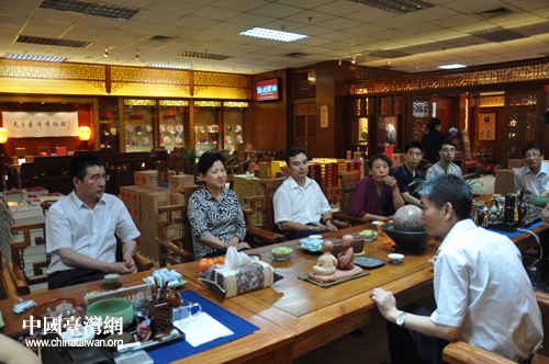 馬玉萍一行首先考察了什剎海地區(qū)文化產(chǎn)業(yè)發(fā)展情況,并參觀(guān)了恭王府。隨后,馬玉萍一行來(lái)到馬連道,與在此經(jīng)營(yíng)的臺(tái)商朋友親切座談,了解企業(yè)經(jīng)營(yíng)發(fā)展情況,并到馬連道茶城考察。(中國(guó)臺(tái)灣網(wǎng)、北京市西城區(qū)臺(tái)辦聯(lián)合報(bào)道)