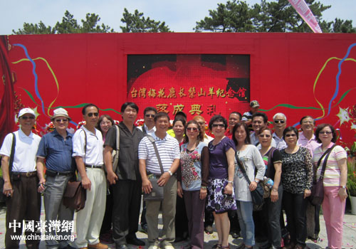 參訪團(tuán)在臺(tái)灣梅花鹿長鬃山羊紀(jì)念館開館儀式現(xiàn)場合影留念。(圖片來源:威海市臺(tái)辦)