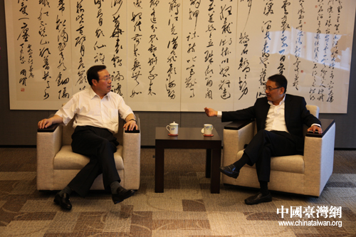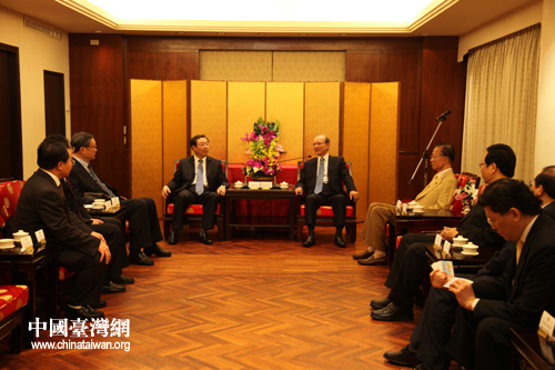 煙臺市委副書記趙強(qiáng)率團(tuán)拜訪中國國民黨副主席林豐正。(圖片來源:煙臺臺辦)