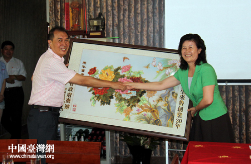 山東省臺(tái)辦主任張雪燕在致辭中表示,臺(tái)資企業(yè)是魯臺(tái)經(jīng)貿(mào)合作的重要基礎(chǔ),很多臺(tái)商朋友投資山東,扎根山東,為山東經(jīng)濟(jì)社會(huì)發(fā)展做出了貢獻(xiàn)。臺(tái)商是離我們最近的臺(tái)灣同胞,一家人之間相互幫助和相互支持是理所當(dāng)然的事情,各級(jí)臺(tái)辦是臺(tái)商之家,要及時(shí)傾聽(tīng)臺(tái)商聲音,為臺(tái)商投資興業(yè)提供優(yōu)良環(huán)境,切實(shí)解決臺(tái)商在生活中的不便和困難,不斷提高臺(tái)商的幸福感和滿意度。張雪燕還代表山東省臺(tái)辦向王克璋先生贈(zèng)送了賀禮。