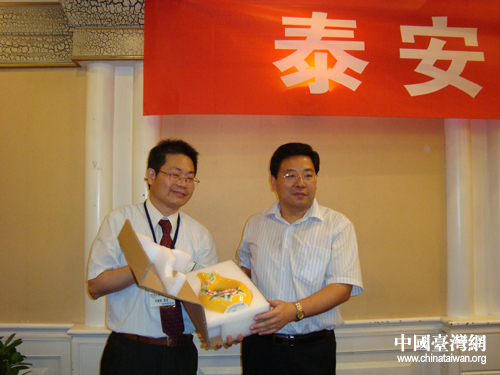 雙方互贈(zèng)禮品。(圖片來源:泰安市臺(tái)辦)